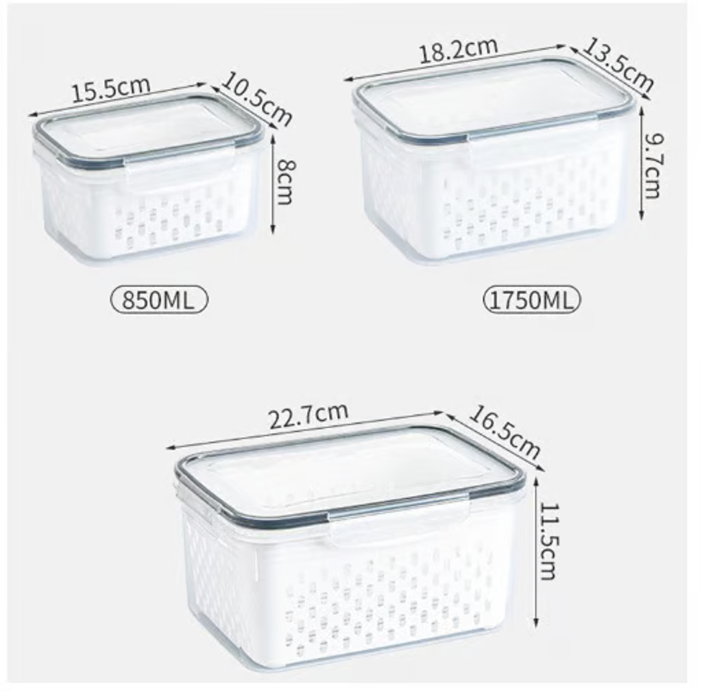 💖🔥Household transparent plastic food storage box-Including drain basket💧