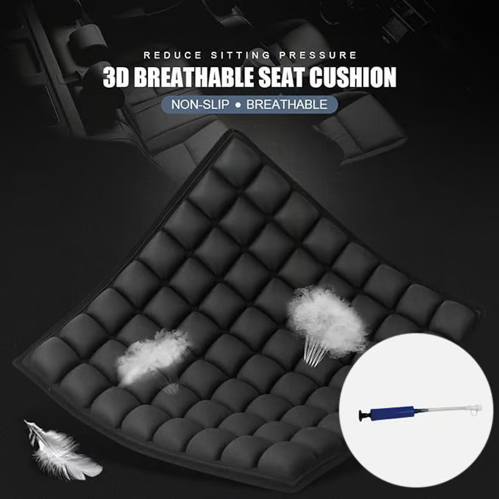 The CloudCushion features 64 Air Cells that contour and hug your bottom, redistributing pressure for unparalleled comfort and support. Even on the most thinly padded, uncomfortable seats, sitting on this cushion will feel like you're on a bed of soft, plush clouds, allowing you to sit comfortably for hours without back, bottom, or tailbone pain.