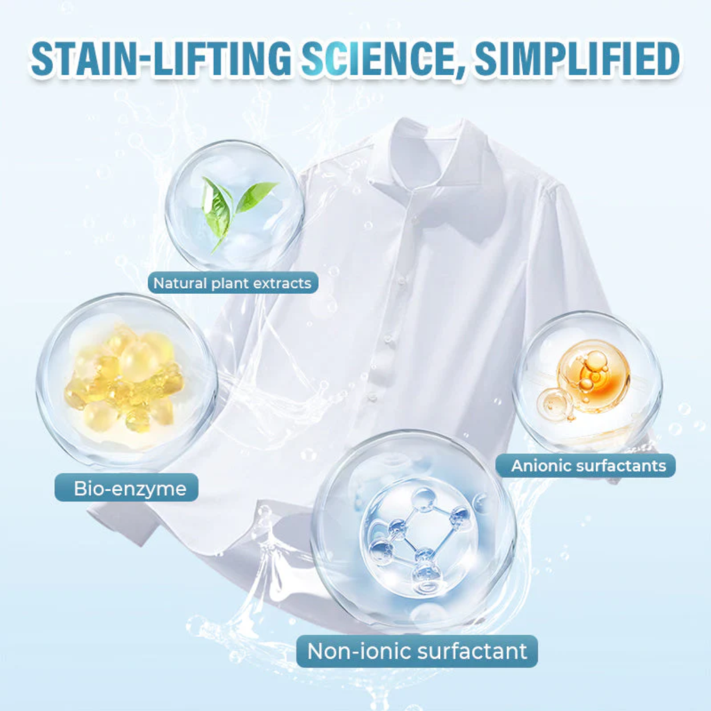 BYE-BYE, STUBBORN STAINS - Say goodbye to frustrating grease, oil splatters, and sauce marks! Our powerful formula penetrates deep to break down even the toughest stains, leaving clothes looking fresh and clean again.